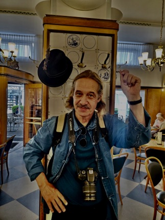 Kent wearing a Bavarian hat from the second hand shop,