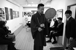 Kojiro Hayashi performing at the photo exhibition. Photo: Kent W. Dahl©