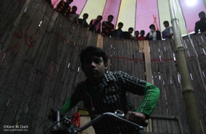 But unlike what he had seen on TV, the uncle built a cylinder with a much smaller circumference. This made it more difficult and dangerous to negotiate; and more thrilling to watch. And to make the show even more heart stopping, he is now using young riders like Shohel.